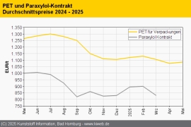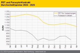 PET Mai 2025: Unübersichtliche Marktlage / PX-Referenz mehr als zwei Monate offen / Importe unattraktiver / Europäische Produktion knapp, aber verlässlich / Trotz flauer Nachfrage moderate Anhebungen
