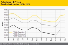 Polyethylen April 2025: Zollchaos führt zu nahezu stabilen Notierungen / Abschläge gegen Monatsende / Für Mai weiterer Preisrückgang erwartet