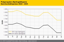 Standard-Thermoplaste Trend Juni 2025: Keine Bewegung bei den Polyolefinen und PVC / Styrolkunststoffe folgen der rückläufigen SM-Referenz