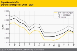 Styrolkunststoffe April 2025: Preise drehen nach unten / Bei EPS wieder keine vollständige Weitergabe der SM-Reduktion
