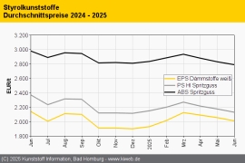 Styrolkunststoffe Juni 2025: Neuerliche Abschläge richten sich wieder nach den rückläufigen Vorproduktkosten / Talfahrt setzt sich im Juli fort