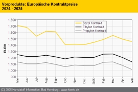 Styrolkunststoffe Mai 2025: Notierungen folgen den rückläufigen Vorprodukten / Nachfrage unvermindert schwach