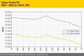 China Technische Thermoplaste Juli 2025: Abwärtstendenz hält wegen günstigerer Vorprodukte meist an / Nur PBT leicht teurer / Bei schwacher Nachfrage wird vielfach eine Fortsetzung des Trends erwartet