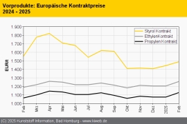 Styrolkunststoffe Februar 2025: Notierungen für PS und ABS folgen bei schwacher Nachfrage den Kosten / Höhere Aufschläge für EPS