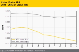 China Technische Thermoplaste November 2024: Geringe Nachfrage drückt die Preise / Nur PBT trotzt dem Trend / Auch Dezember schwach erwartet