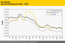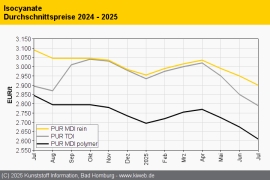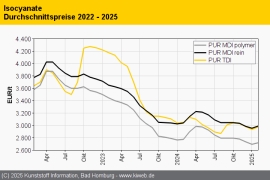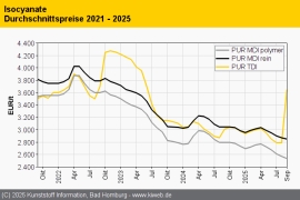 PUR Februar 2025: Preisauftrieb nimmt für Isocyanate und Polyole gleichermaßen Fahrt auf / Nachfrage bleibt hinter den Erwartungen zurück / Weitere Aufschläge sicher