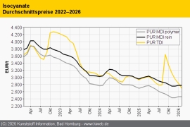 PUR Februar 2026: Abwärtstrend für TDI bleibt intakt / Ansonsten überwiegt der Rollover / Lagerauffüllungen zu Jahresbeginn rar / Wegfall chinesischer Exportsubventionen könnte bei Polyolen für Chaos sorgen