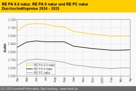 Standard-Regranulate April 2025: Nachfrage legt zwar leicht zu, von Trendwende aber kann noch keine Rede sein / Regranulierer weiter unter Kostendruck / PET-Markt mit kleinem Boom