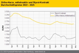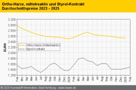 Composites/GFK Februar 2025: Aufwärtstrend bei Ortho-Harzen / Faserschnittmatten wohl mit erneutem Rollover
