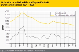 Composites/GFK August 2025: Harze und Glasfasern zeigen zunächst noch leichte Abschläge / Im September nähern sich die Notierungen aber der Talsohle / Bedarf mit zumindest positiver Prognose